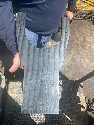 Casing caliper tool to insure casing elevators are correct, and casing collar the correct size. Special sizes can be made to fit customers needs.